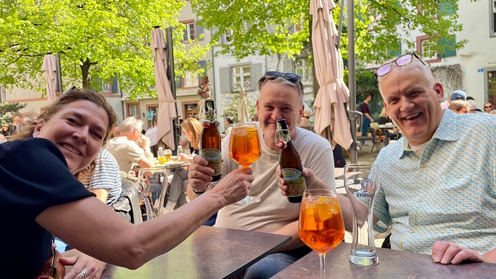 Having guests is always a chance for us to show the best of Basel. We’ve developed our standard city tour that includes a visit to the Munster(cathedral), taking the ferry across the Rhine, walking the old cobblestone streets, and having a drink at one of the buvettes when the weather is nice. It’s a reminder for us how fortunate we are by seeing Basel through the eyes of our guests.